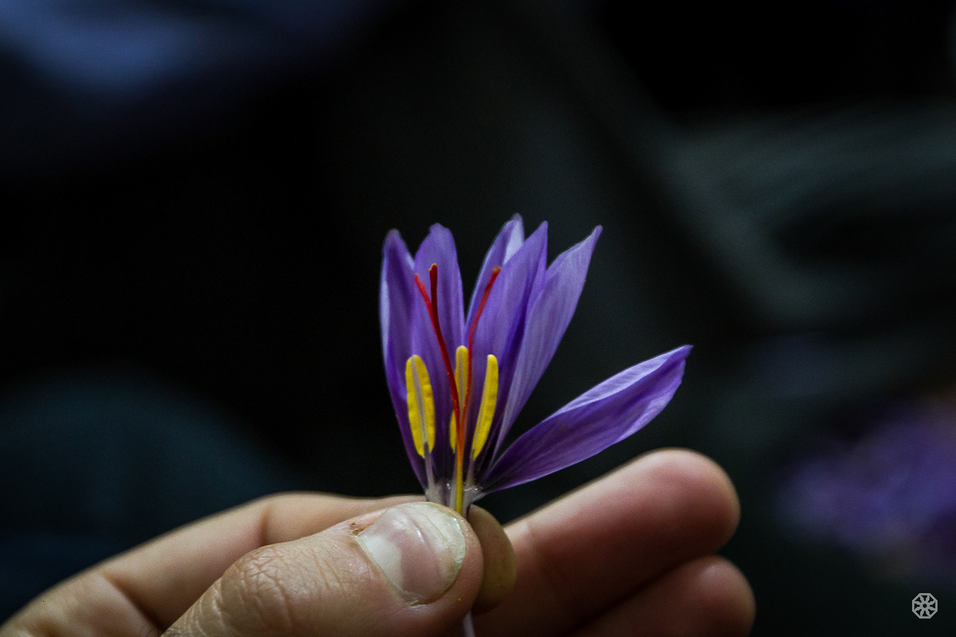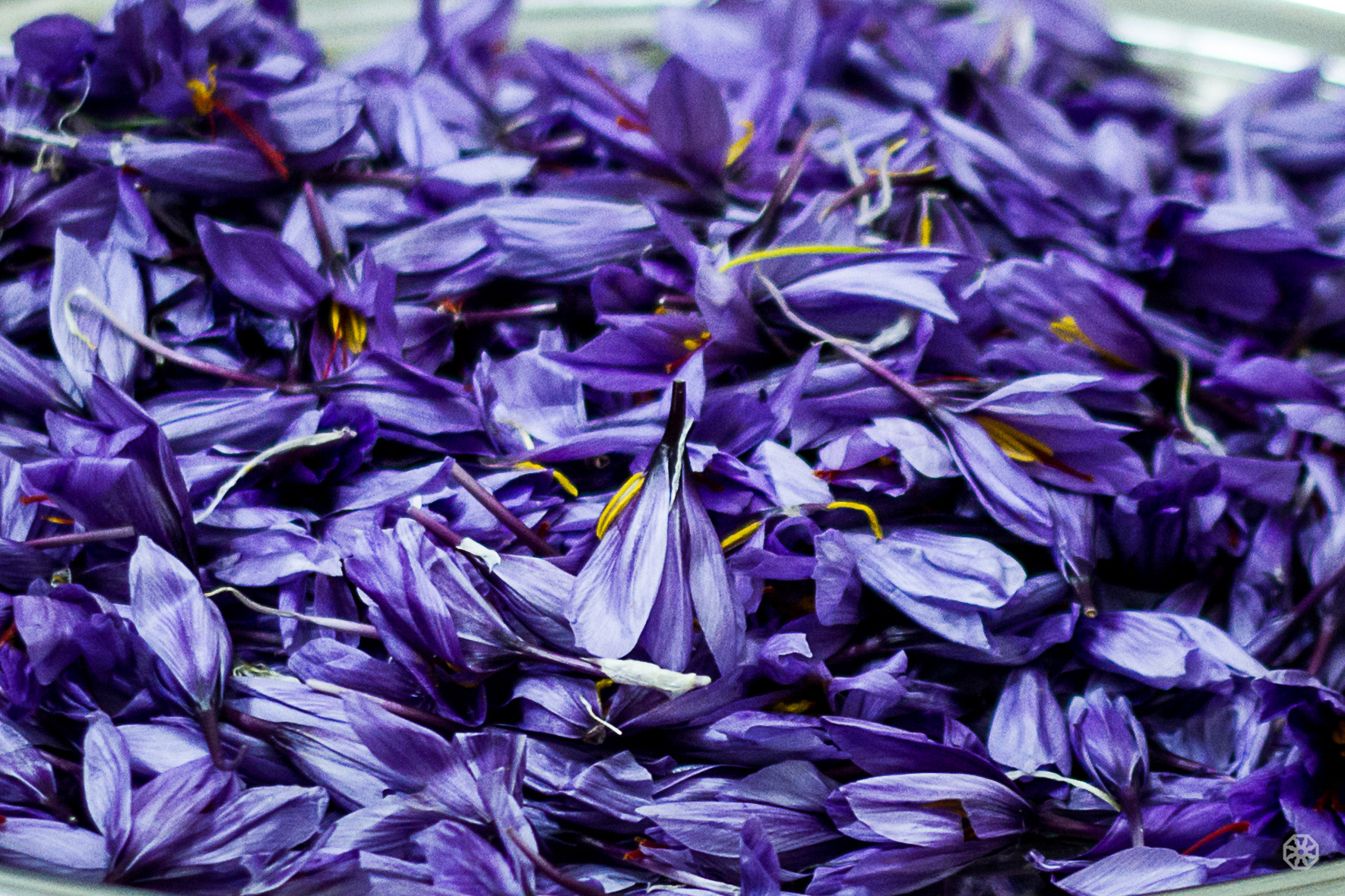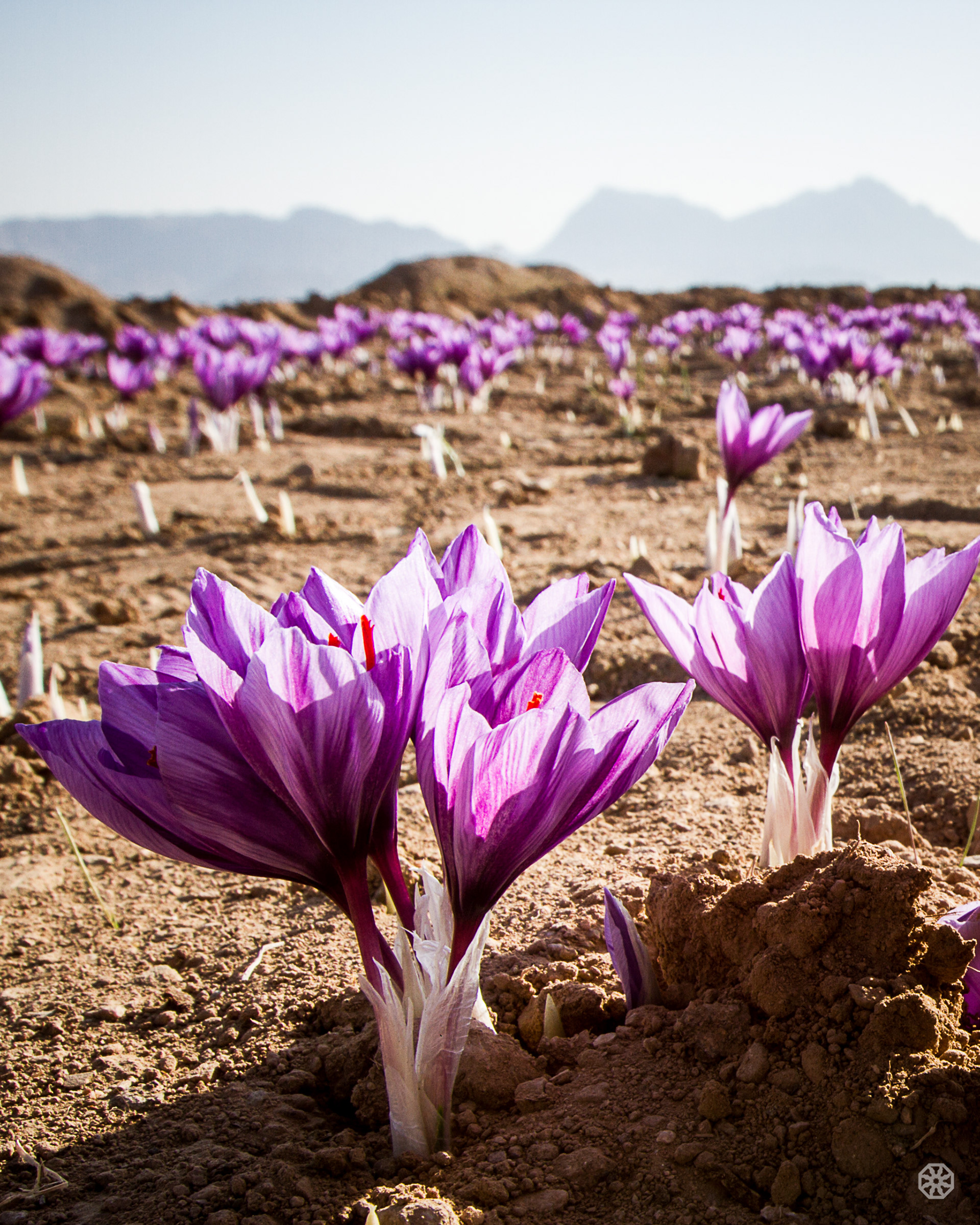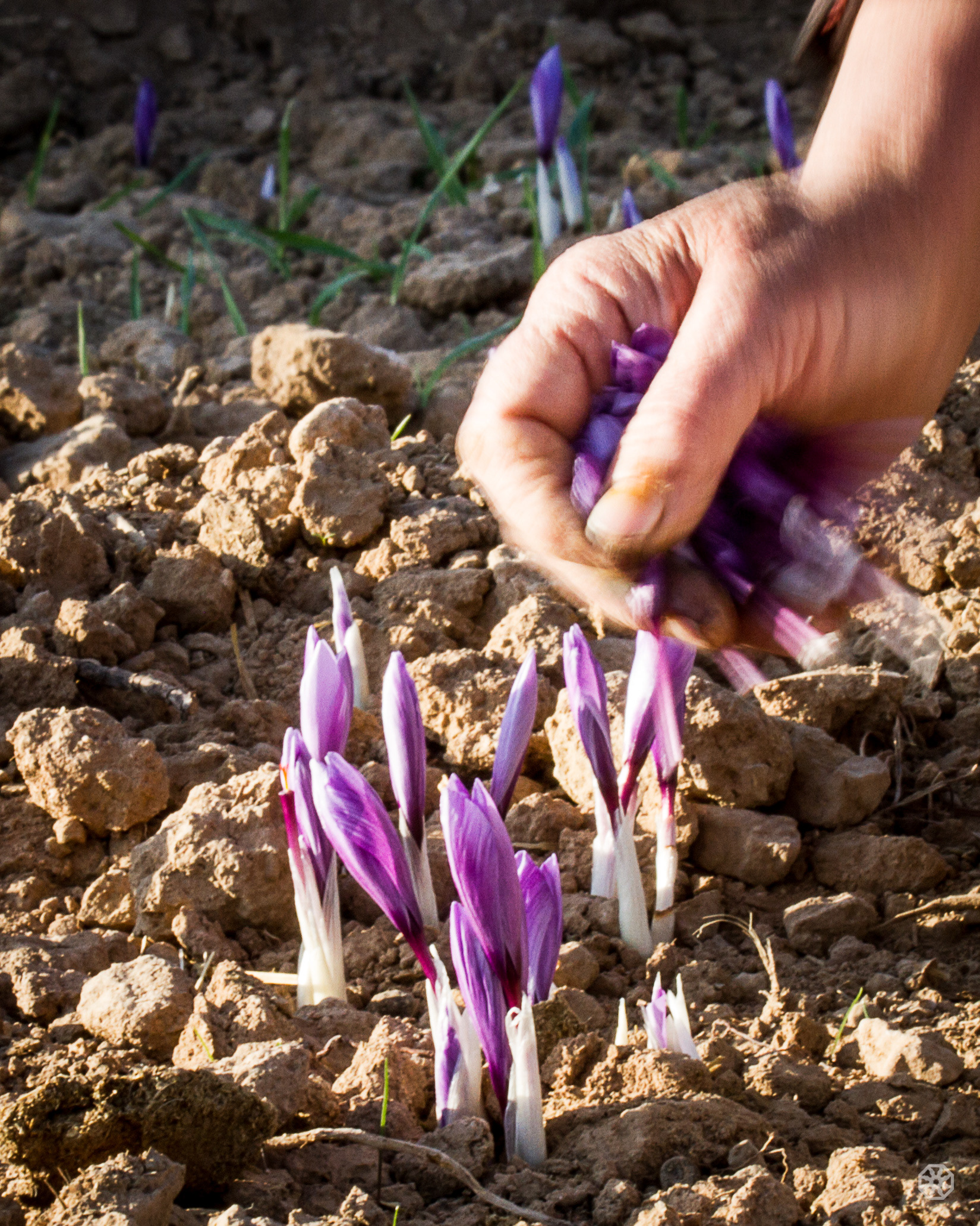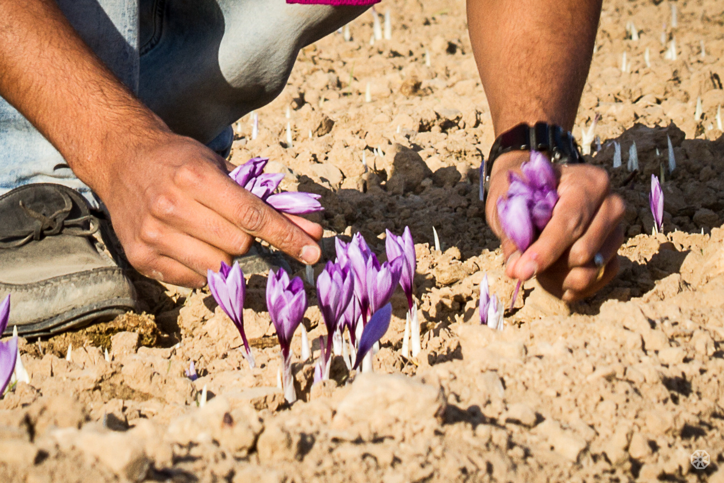 Le vent chaud, chargé de senteurs résineuses et balsamiques, fait danser les fleurs de crocus, s’étourdit dans leur parfum de lys, et étreint par surprise le cueilleur contemplatif. Leur vie ôtée aussitôt épanouie, leur haleine se mue peu à peu en une aura poudrée et amandée. Puis, à leur tour, les stigmates laissés par le temps s'envolent pour un voyage aride sans retour, qui les verra renaître en un phoenix rubis et ardent, métallique et puissant, nommé safran.
