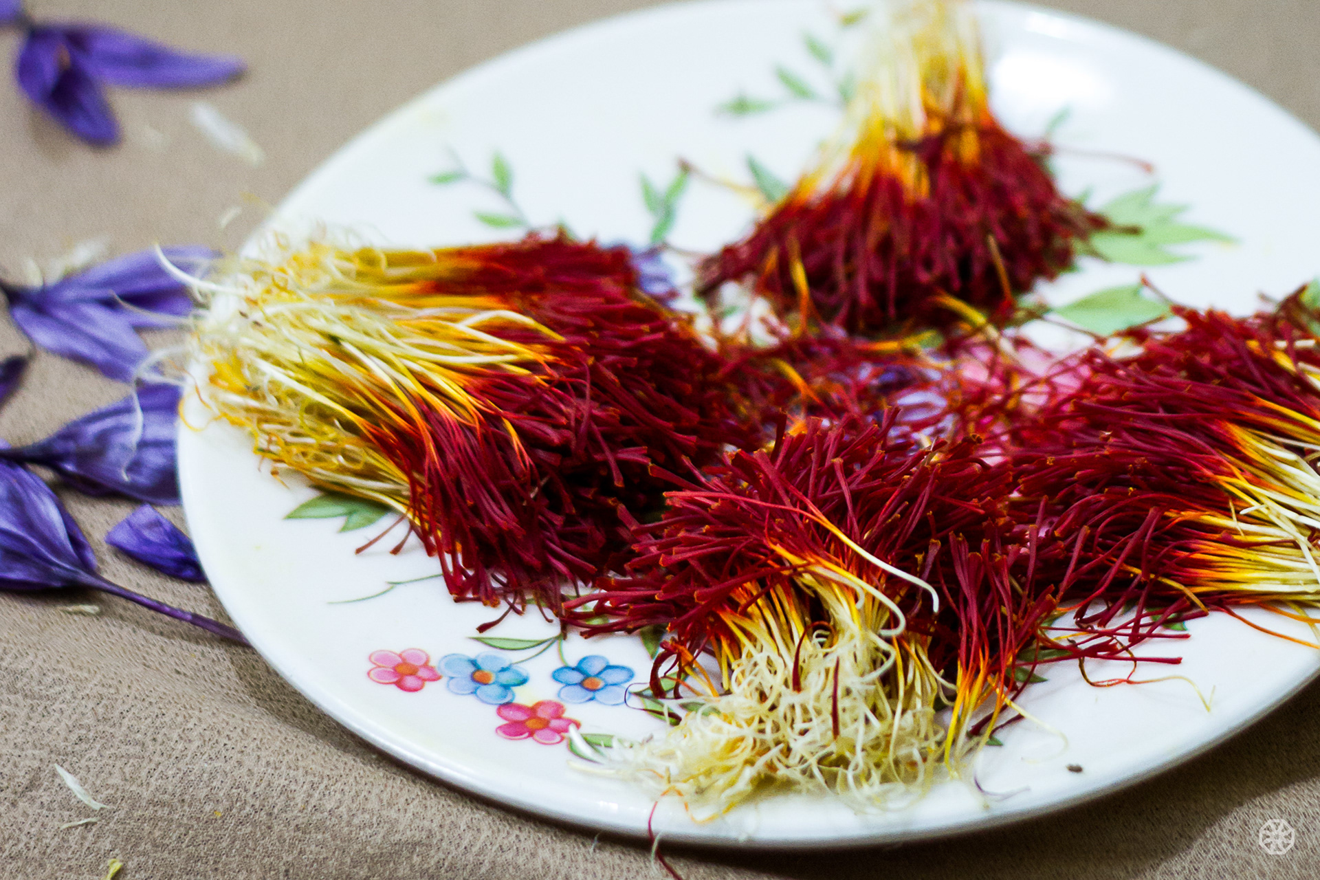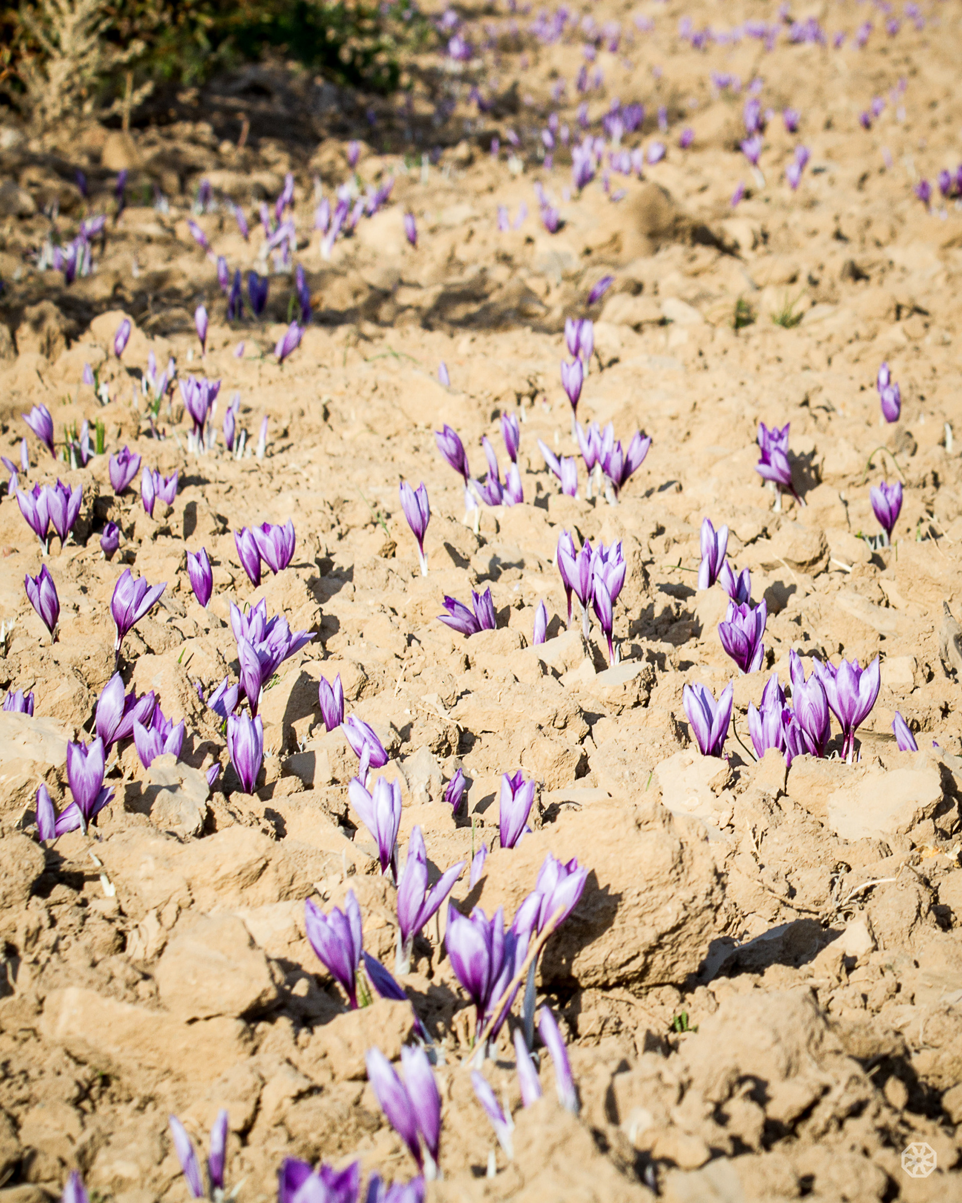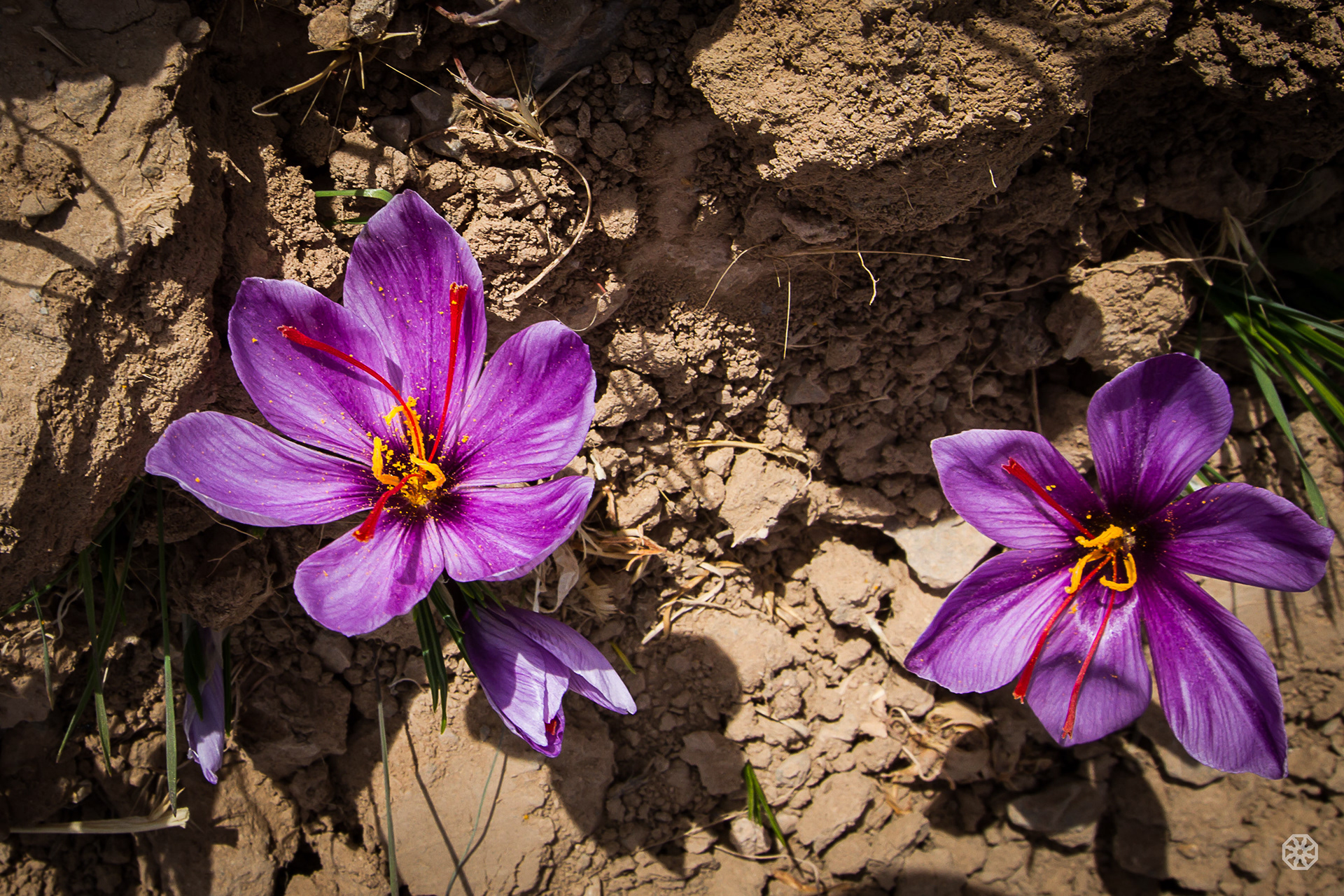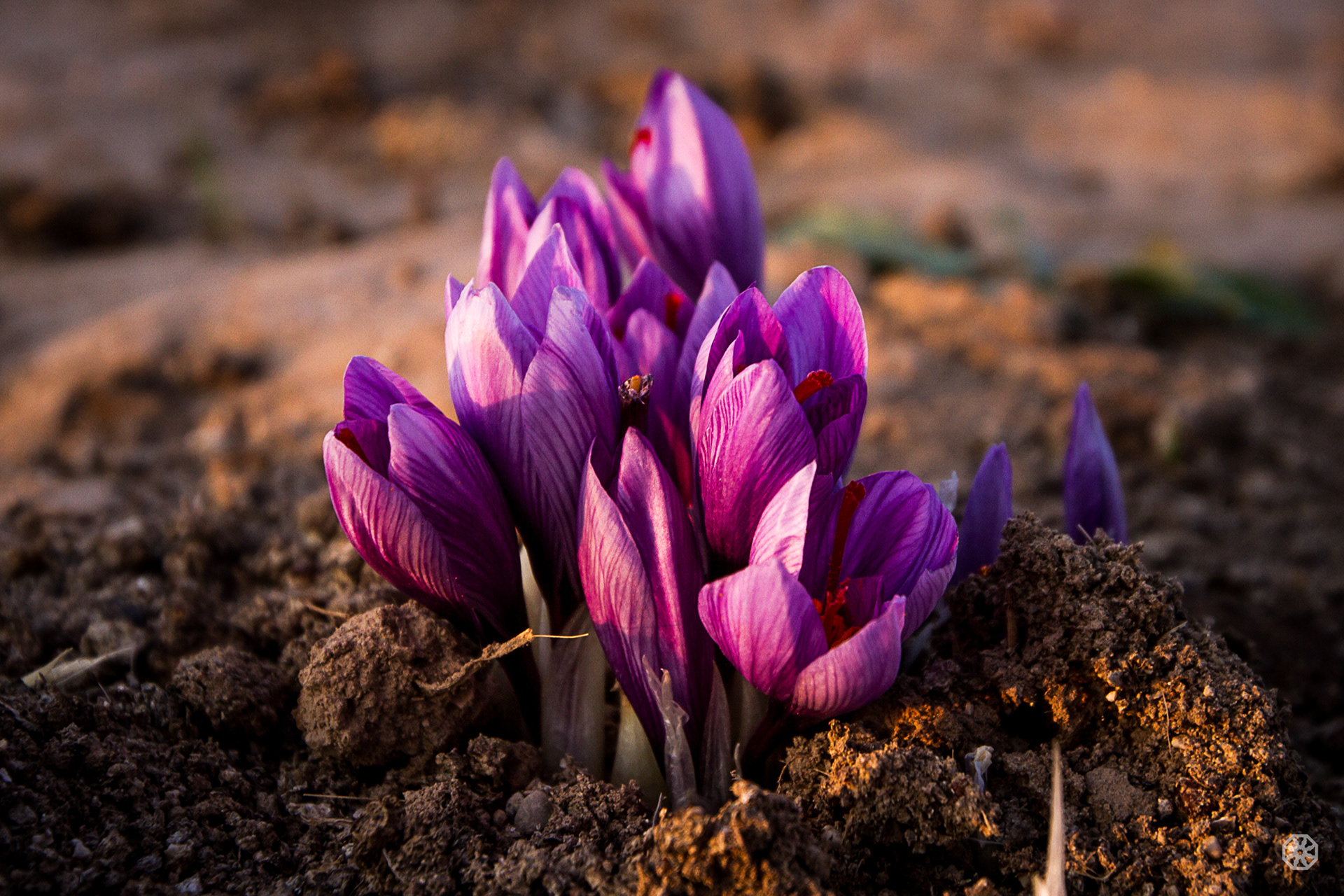 Le vent chaud, chargé de senteurs résineuses et balsamiques, fait danser les fleurs de crocus, s’étourdit dans leur parfum de lys, et étreint par surprise le cueilleur contemplatif. Leur vie ôtée aussitôt épanouie, leur haleine se mue peu à peu en une aura poudrée et amandée. Puis, à leur tour, les stigmates laissés par le temps s'envolent pour un voyage aride sans retour, qui les verra renaître en un phoenix rubis et ardent, métallique et puissant, nommé safran.