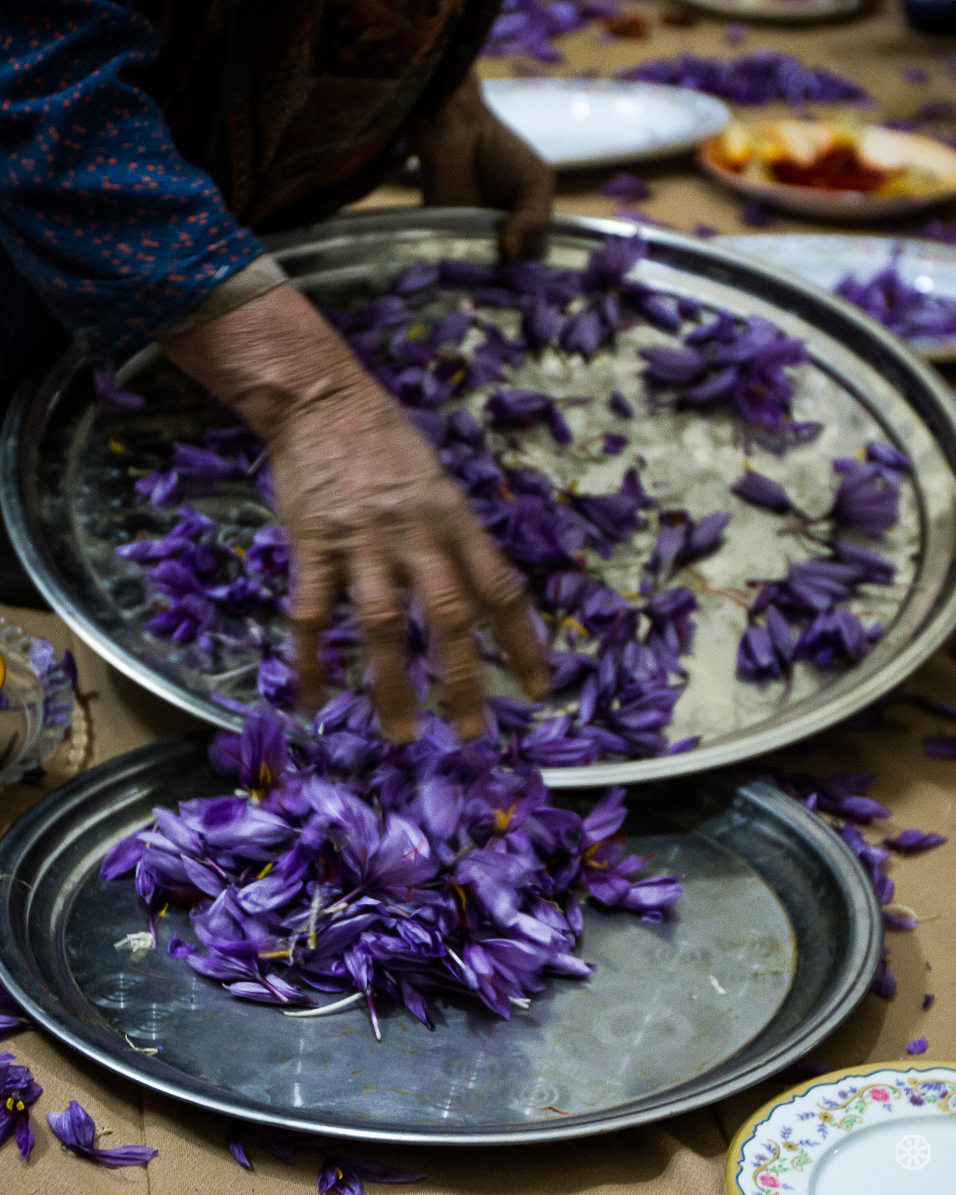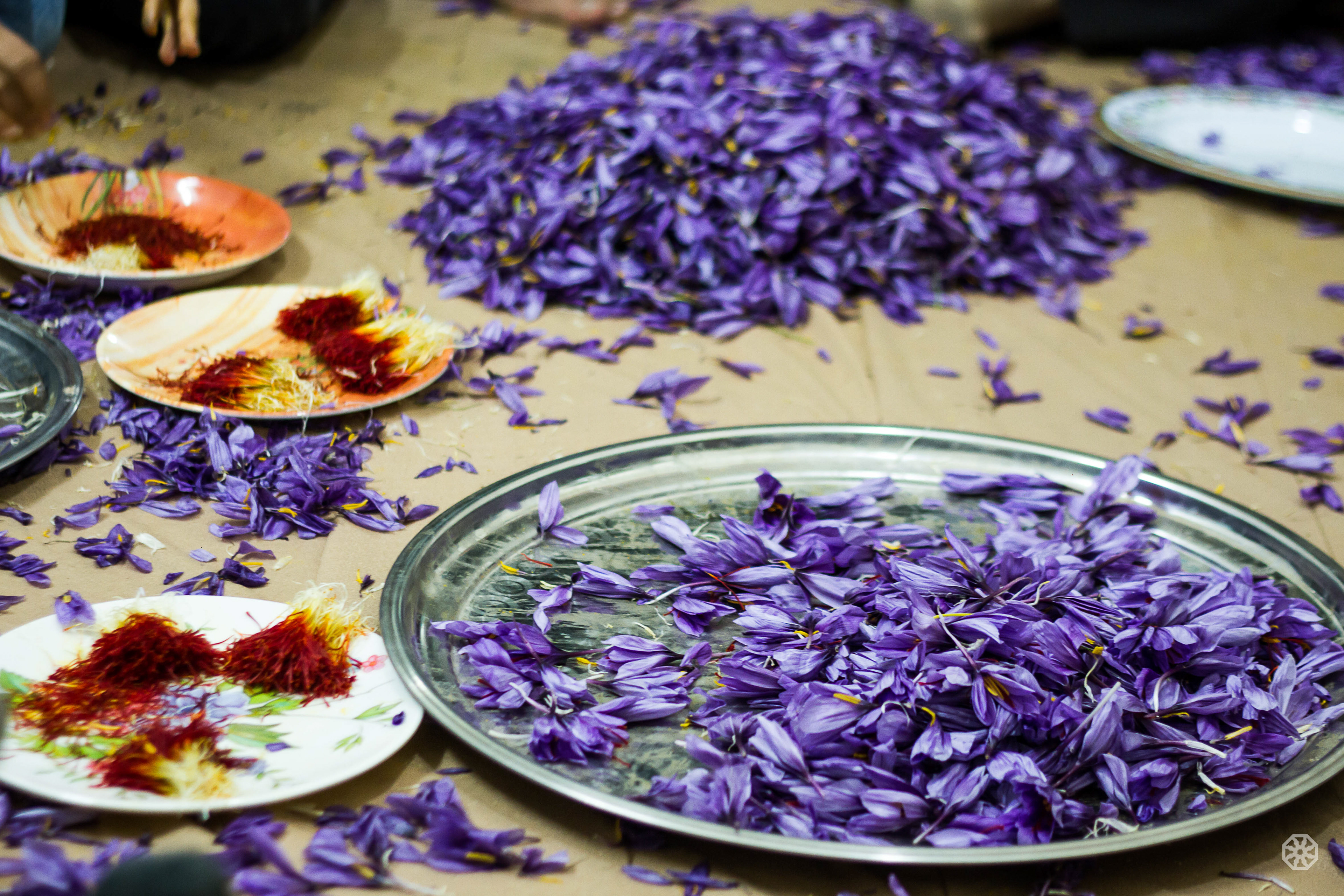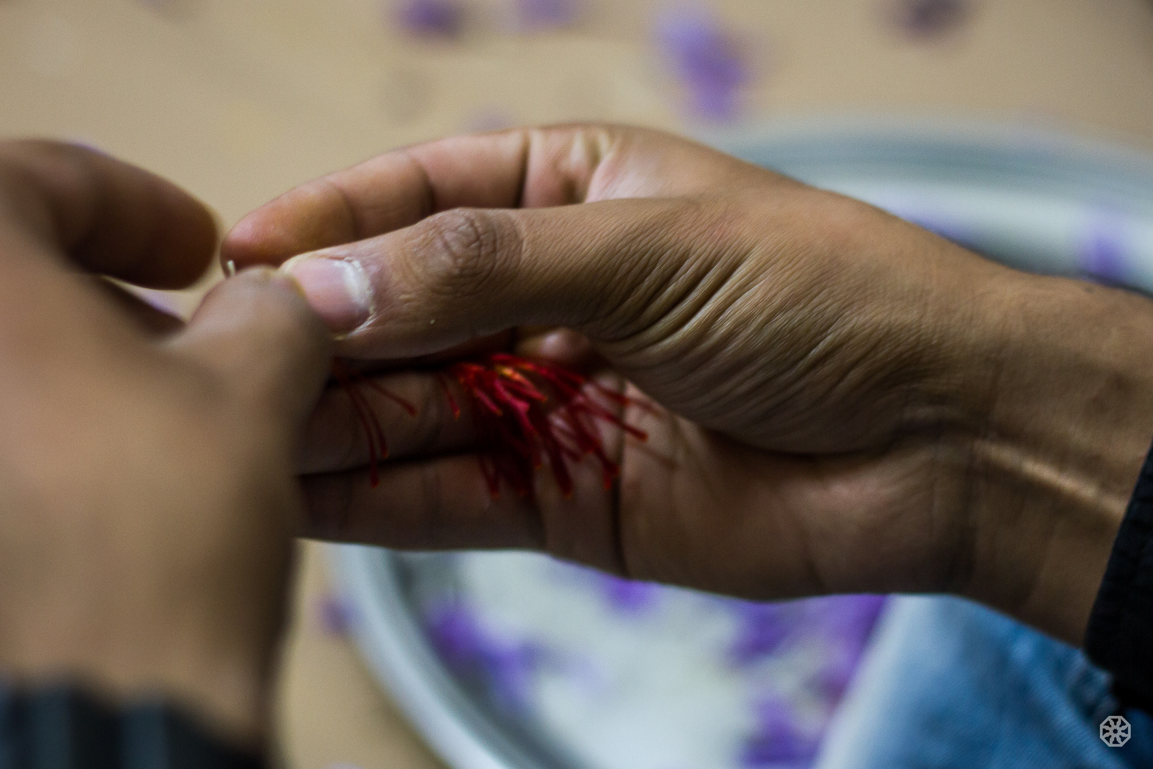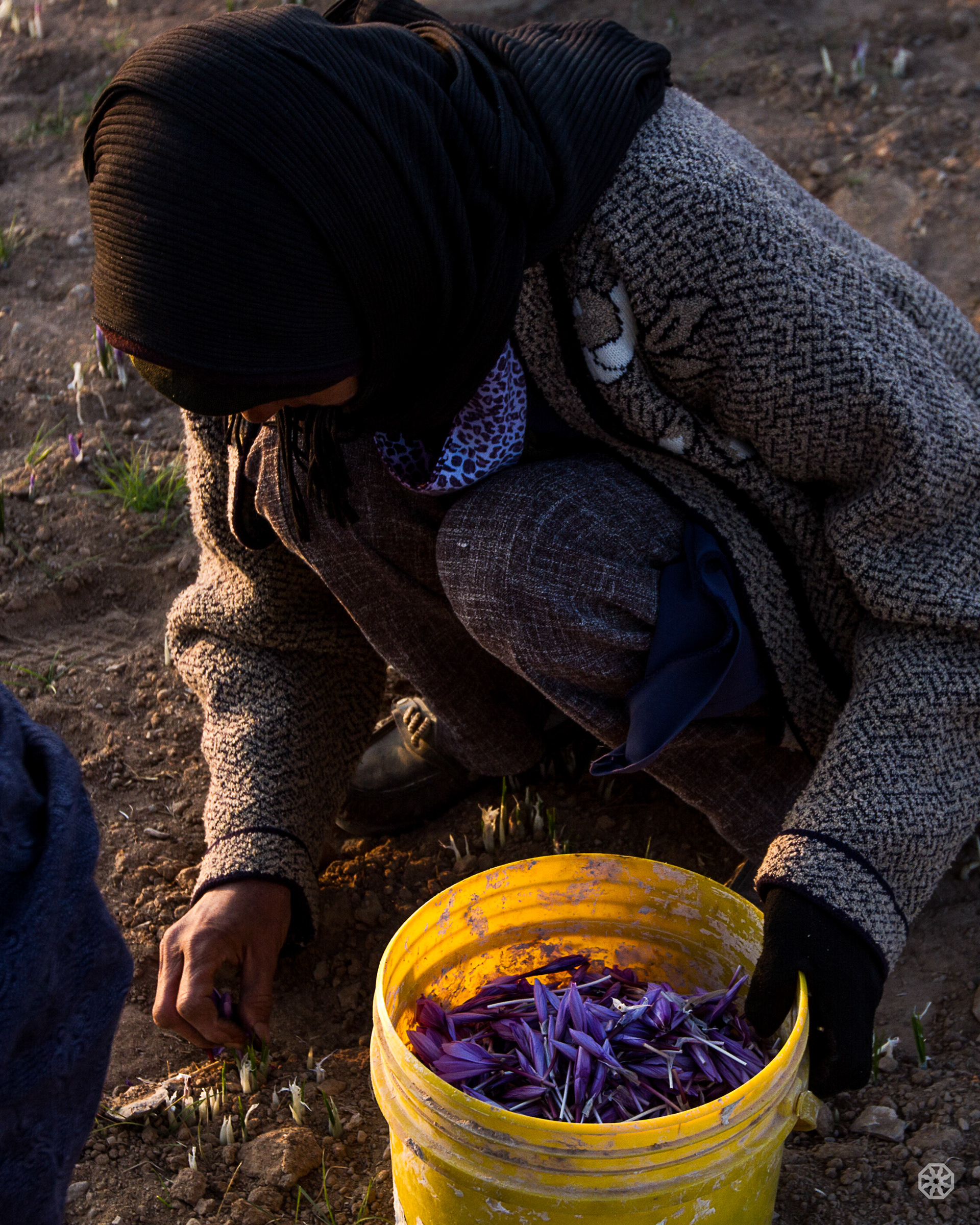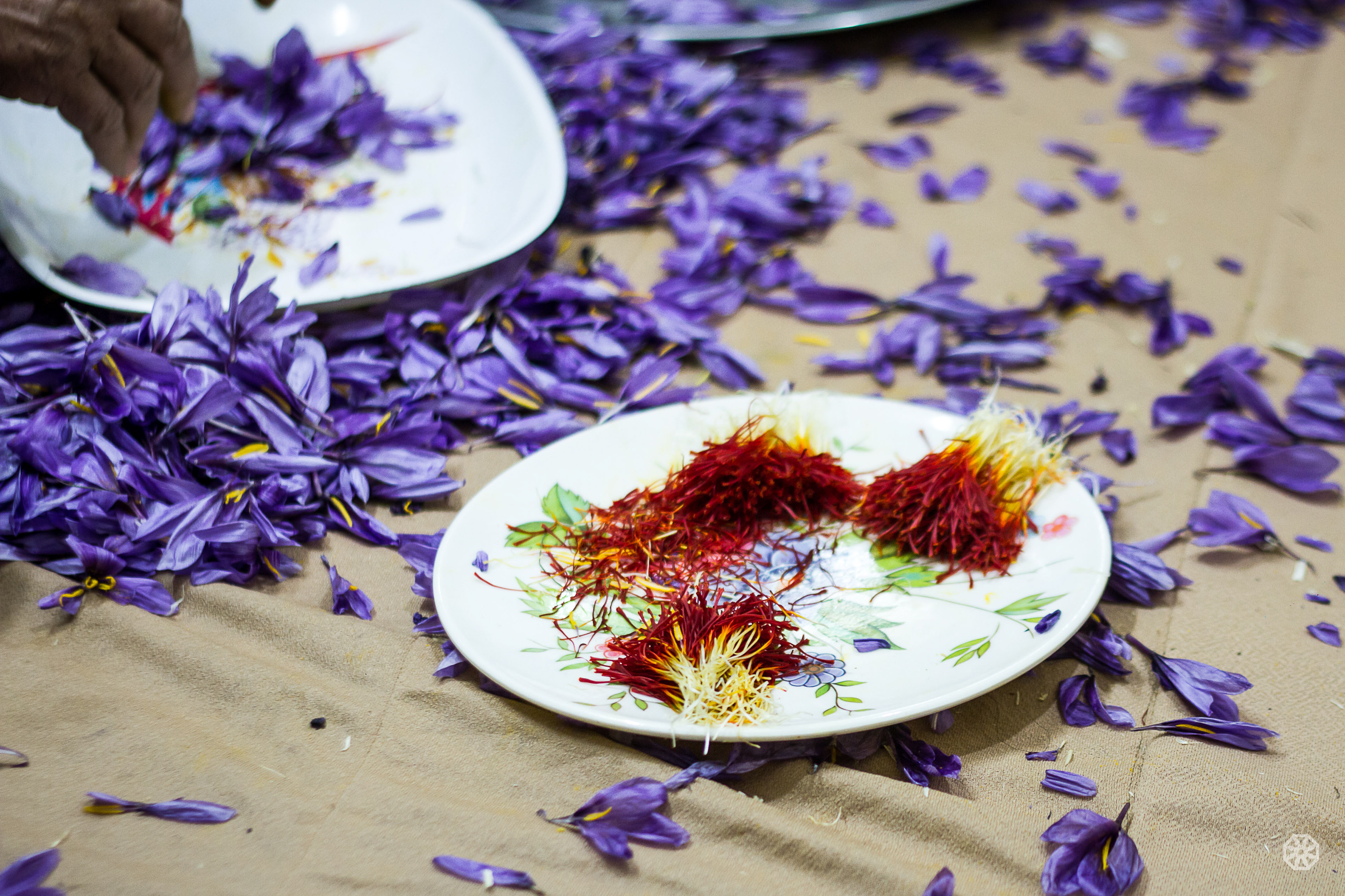 Le vent chaud, chargé de senteurs résineuses et balsamiques, fait danser les fleurs de crocus, s’étourdit dans leur parfum de lys, et étreint par surprise le cueilleur contemplatif. Leur vie ôtée aussitôt épanouie, leur haleine se mue peu à peu en une aura poudrée et amandée. Puis, à leur tour, les stigmates laissés par le temps s'envolent pour un voyage aride sans retour, qui les verra renaître en un phoenix rubis et ardent, métallique et puissant, nommé safran.