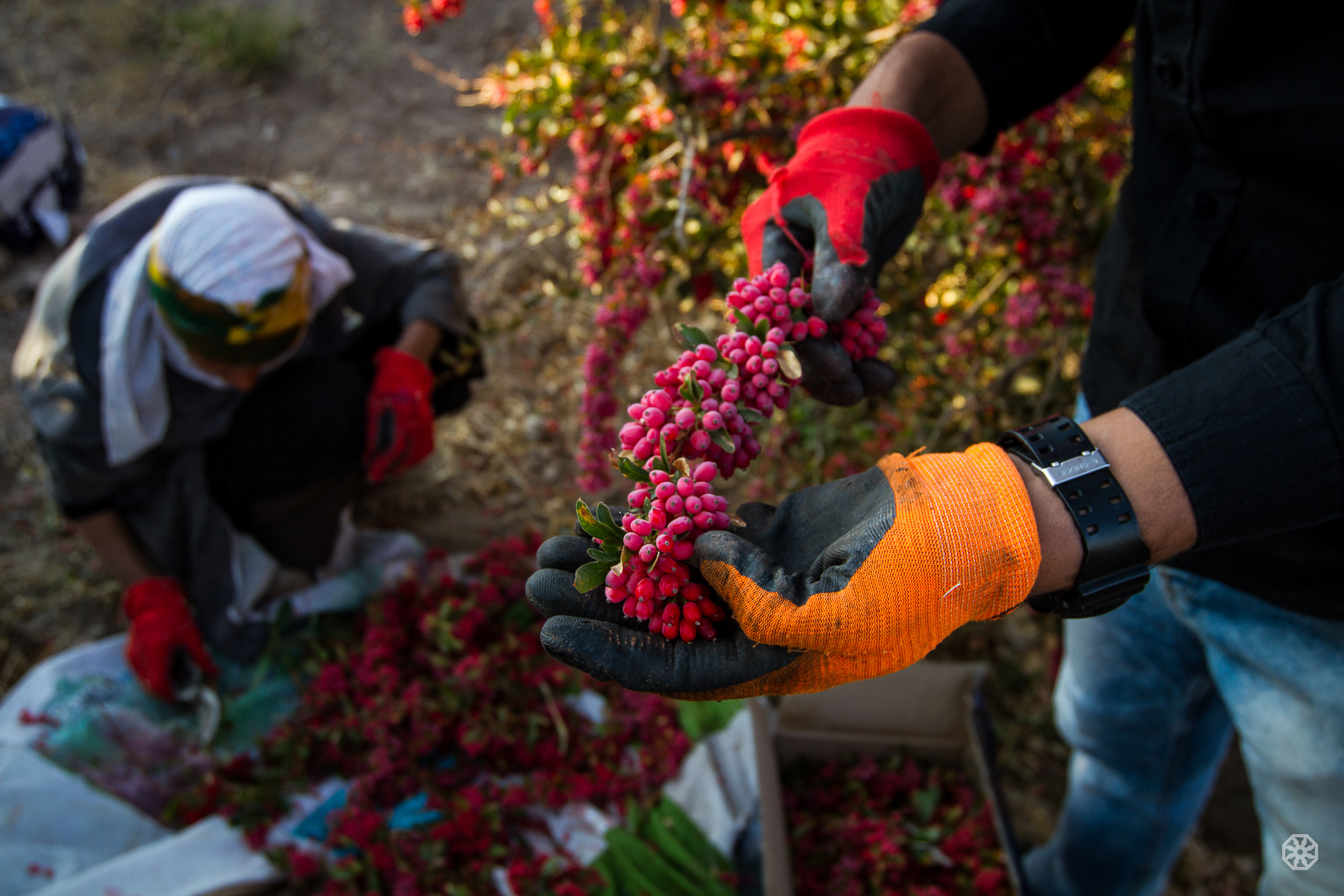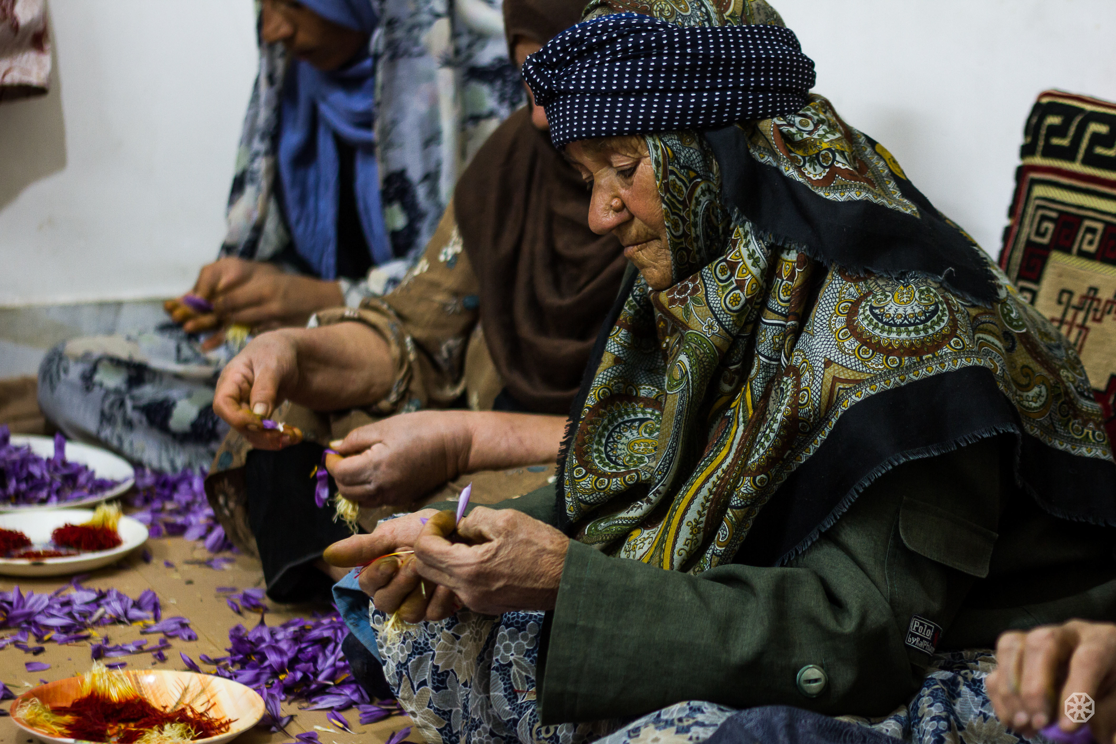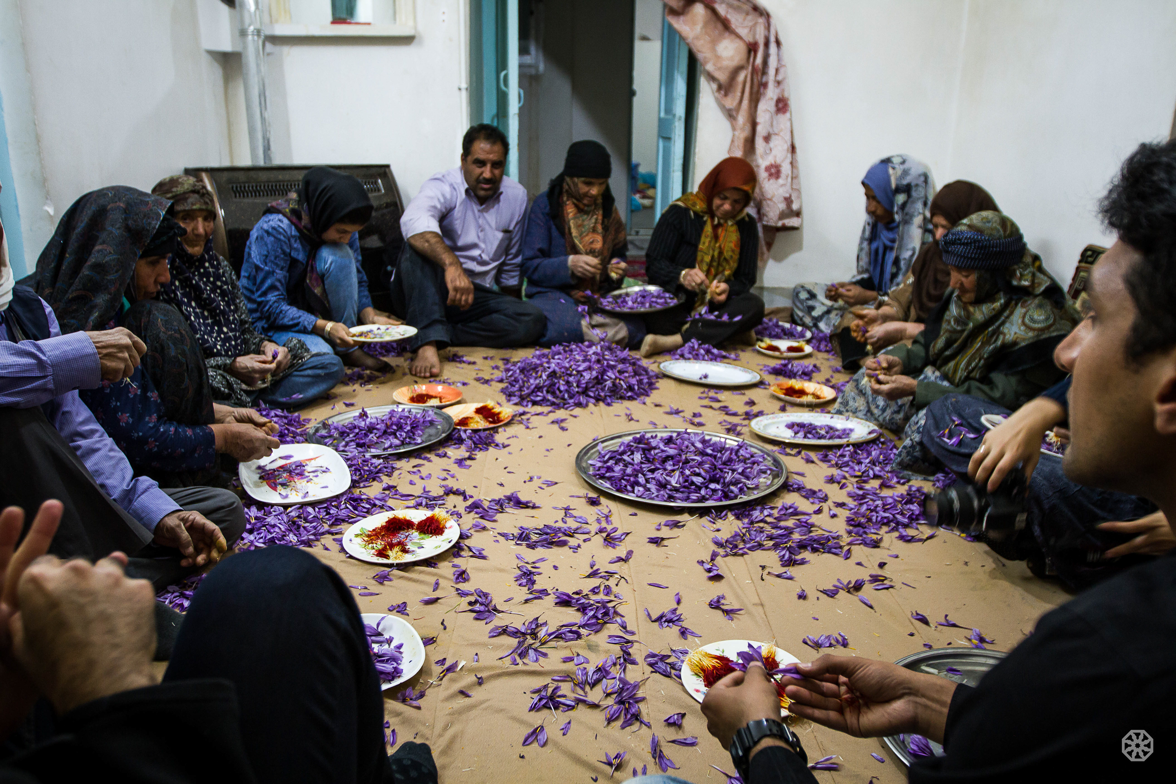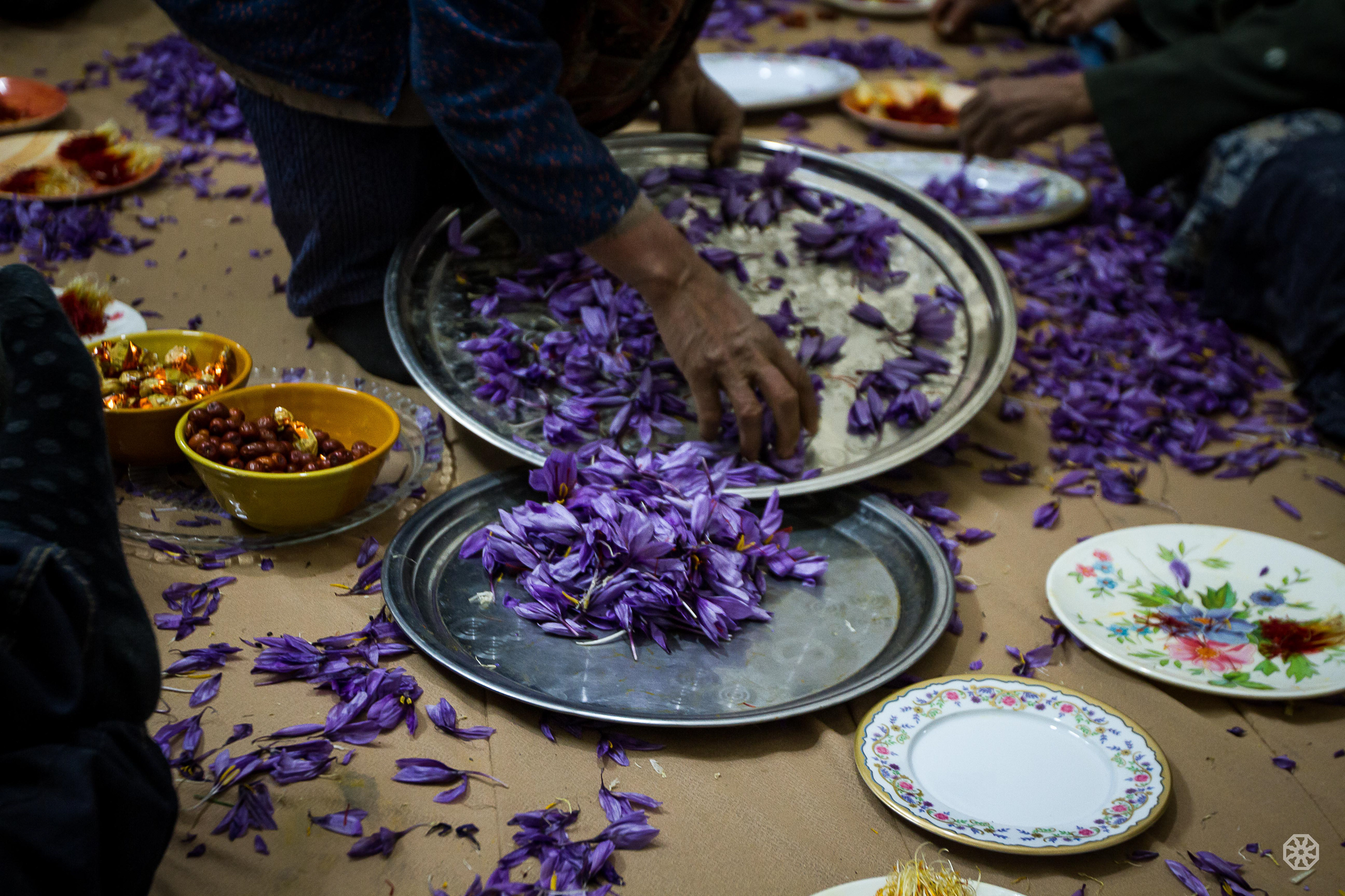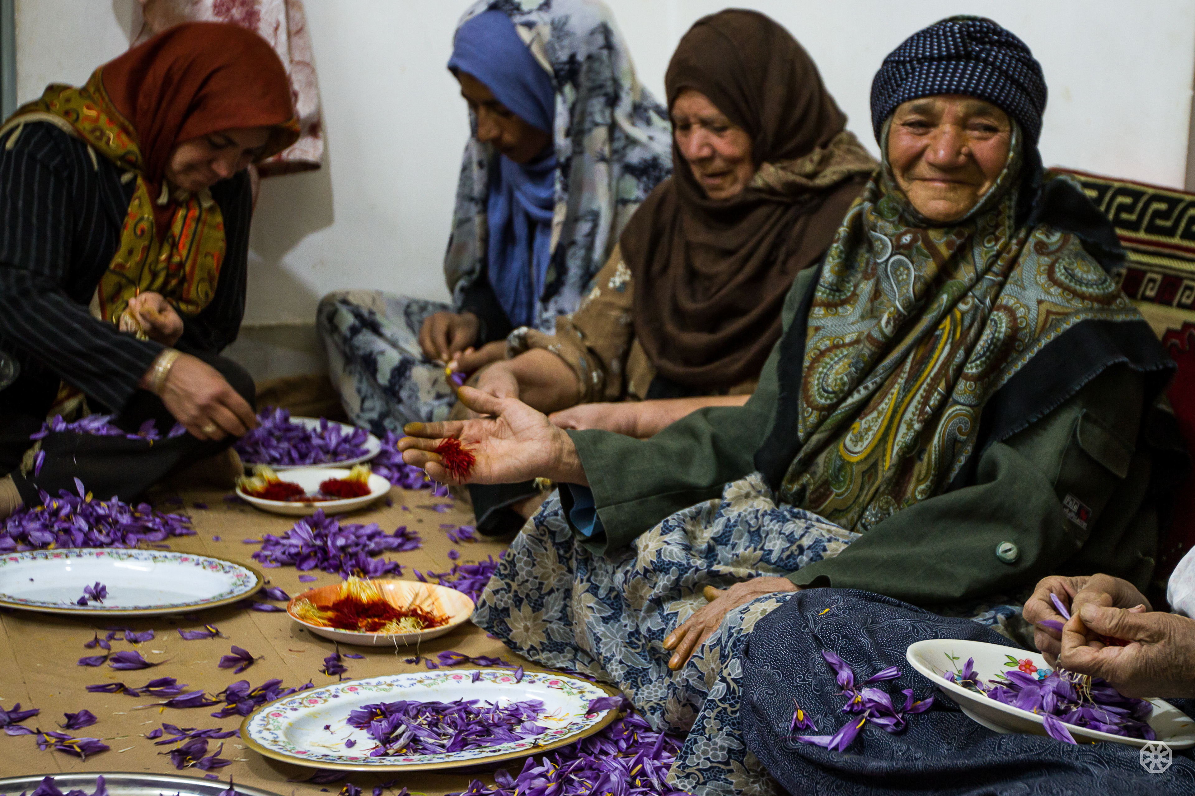 Le vent chaud, chargé de senteurs résineuses et balsamiques, fait danser les fleurs de crocus, s’étourdit dans leur parfum de lys, et étreint par surprise le cueilleur contemplatif. Leur vie ôtée aussitôt épanouie, leur haleine se mue peu à peu en une aura poudrée et amandée. Puis, à leur tour, les stigmates laissés par le temps s'envolent pour un voyage aride sans retour, qui les verra renaître en un phoenix rubis et ardent, métallique et puissant, nommé safran.